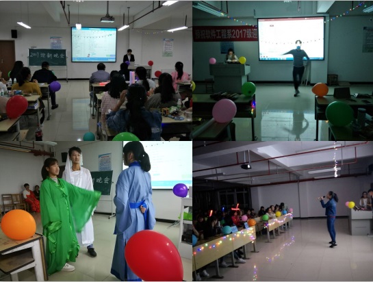 本网讯 流光溢彩迎新夜,心心连新齐飞扬。为了迎接2017级新生的到来,展现软件工程系学子风采,10月15、16日晚,主题为“新学期 新开始”的软件工程系2017级迎新晚会分别在本部大阶梯教室一和丰收佳苑C301、C401教室拉开帷幕。软件工程系主任陈平、党总支副书记王莉娟、副主任陈向东、团总支书记曾甜以及软件工程系的老师和同学们参加了本次晚会。