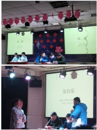 开场的扇子舞可以称得上是美轮美奂,成功的吸引了所有观众的目光,带动了氛围。软件工程系的同学们是第四组进行表演,作品《梦里寻梦》讲述的是大一新生程航在进入相对轻松的大学生活后,终日沉迷于网络游戏,觉得大学生活很没有意思,失去了往日的激情与目标。在经历一些事情后,他终于振作起来,开始反思自己,走出困境,开始了一段崭新的航程!作品揭露了当代许多青少年存在的像主人公程航一样的问题,耐人深思。节目的编排凸显出同学们的聪明才智,闪现出现实生活中的亮点,仿佛让人身临其境,使台下的观众们在观看过后心灵都受到了极大的触动,赢得了热烈的掌声。