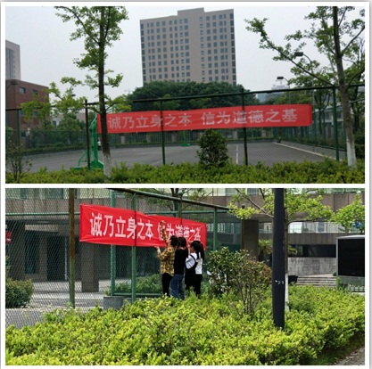 软件工程系在校园里拉起了“诚乃立身之本信为道德之基”的红色条幅,吸引了众多同学的目光。同学们参与签名活动的热情非常高,大家纷纷在条幅上签上自己的名字,表明自己做诚信学子的决心。在活动过程中,班干们积极向前来签名的同学们宣传守信于行、诚信至上的精神,在同学们中间营造出了“人人知诚信,人人讲诚信”的良好氛围。