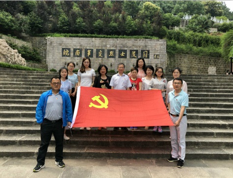 15日下午,吴志华带领大家来到宣城市泾县皖南事变烈士陵园,面对党旗,在系党总支宣传委员虞娟的领誓下,吴志华与全体党员一起重温入党誓词,表达拥护党的纲领、遵守党的章程、履行党员义务、执行党的决心、严守党的纪律、保守党的秘密、对党忠诚,愿为共产主义奋斗终身的坚定态度和决心。皖南事变烈士陵园,由入口纪念碑、主题广场、主碑纪念广场和无名英雄烈士墓四个纪念性空间序列配以皖南事变史料陈列室有机组合而成,整座陵园以邓小平题写的“皖南事变死难烈士永垂不朽”纪念主碑为中心,结合山形地势,将各纪念建筑组成一个完整有序、庄严肃穆的有机整体。全体党员怀着敬畏的心情,缅怀革命先烈。
