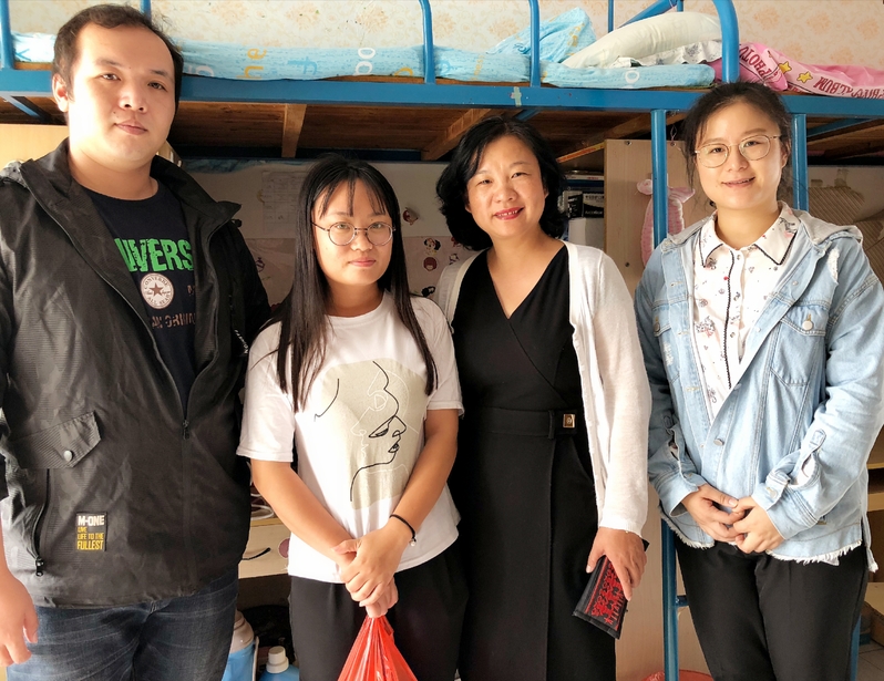 王莉娟来到本部宿舍,在辅导员马宇飞的陪同下,看望2016级数字媒体应用技术(1)班张慧同学,关切地询问了她的学习和生活情况,并鼓励她好好学习,为很快面临的就业问题打好专业基础。随后,王莉娟又赶赴秀山校区,在辅导员宋启慧的陪同下,来到丰收佳苑宿舍,看望慰问2017级软件技术(2)班吴其浩同学,同时还将热心人士资助的困难补助金转交给了吴其浩同学。王莉娟与吴其浩亲切交谈,勉励他好好学习。她说,学校就是一个大家庭,老师一方面是老师,同时也像学生的家人,同学们就是你的兄弟姐妹。希望吴同学能好好学习,心中有理想,将来成为有理想、有抱负、有本事、敢担当的人,并勉励他要不惧困难,刻苦学习,做一名品学兼优的学生。吴其浩同学表示一定会以学校老师同学的关心作为动力,好好学习,用优秀的成绩回报大家。系领导还提醒留校的同学,一定要提高安全防范意识,注意各项安全。