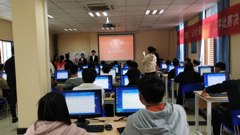 通过预赛,各班级产生了八名选手进入决赛。决赛现场,比赛时间还未到,各位选手们就早早的到达比赛场地进行积极“备战”了。他们的手指在键盘上不停地飞舞着,手指与键盘撞击发出独特的声音,犹如一篇乐曲。决赛共三轮,采用《金山打字通》速度测试中的屏幕对照进行比赛,在规定时间内参赛选手打完同一篇文章,根据打字速度和正确率确定成绩。为了保证本次活动的公平公正,系领导对比赛进行了全程监督。选手们根据要求进行三轮角逐,最后结合正确率和速度来确定成绩。经过紧张的角逐,最终朱辰禹、陈鑫卓、安晨玮三位同学获得了本次比赛的一等奖,马兴亮等六名同学获得了本次比赛的二等奖, 阚筑梦等九名同学获得了本次比赛的三等奖。