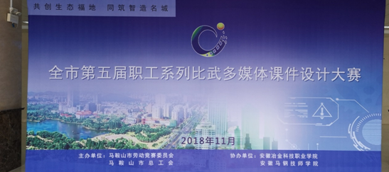 本网讯 为组织引导职工更好适应“互联网+”时代潮流,提高职工运用信息技术的能力,根据《关于组织开展打赢三大攻坚战劳动竞赛暨全市第五届职工系列比武活动的通知》(马竞〔2018〕1号)文件要求,由马鞍山市劳动竞赛委员会,马鞍山市总工会主办的“全市职工多媒体课件设计大赛”于2018年11月10日在安徽冶金科技职业学院如期举行。软件工程系选手吴慧林、黄莺和毛芳菲老师参加了这次比赛,软件工程系分工会主席王莉娟书记带领分工会委员前往比赛场地,为比赛的队员加油助威。