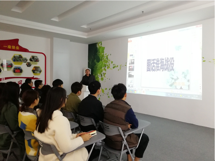 本网讯 为了贯彻落实市委组织部和学校党委的相关文件精神,软件工程系党总支第二党支部于2018年11月22日下午组织了部分学生党员和入党积极分子在市软件园党建活动中心参观学习,并组织召开“冬蕴季”主题党日活动暨纪念“淮海战役”胜利70周年讲座。主讲人为系党总支第二党支部书记胡军老师。