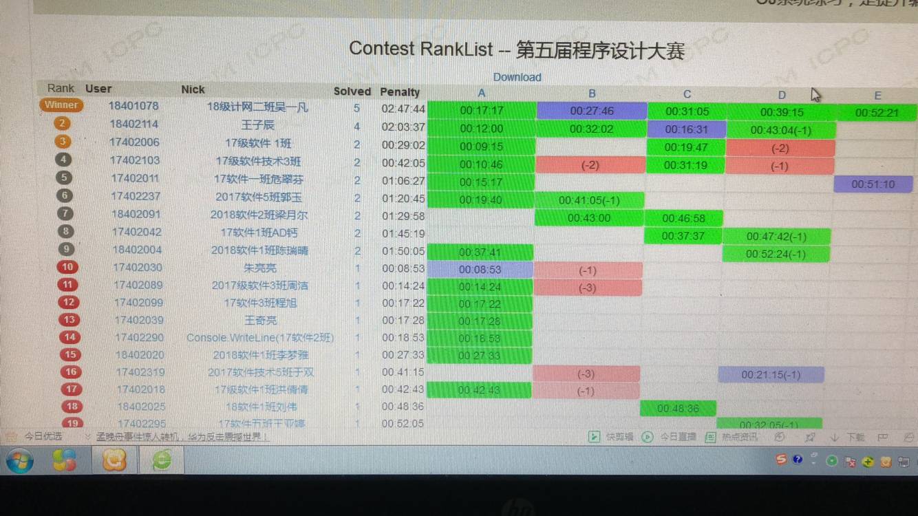 本次程序大赛由初赛和复赛两部分组成,初赛是让同学在指定的时间内,登录我校oj系统,完成上面程序设计的题目,排名前100名的同学将入围决赛。决赛考试也是通过oj系统来出题和评分。