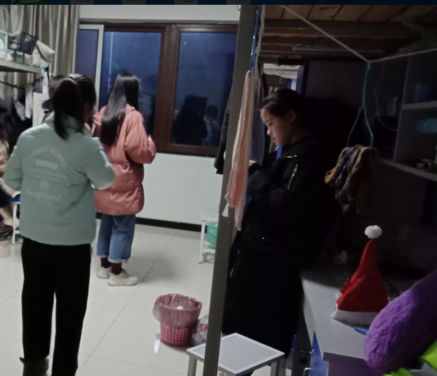 本网讯 12月29日,为了营造良好的寝室文化氛围,确保节假日期间寝室安全,做好学生的寝室安全教育工作,软件工程系自律委员会对秀山校区寝室进行了安全检查工作,此次检查由宿管老师马洪泽带队。