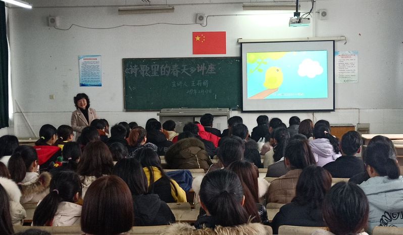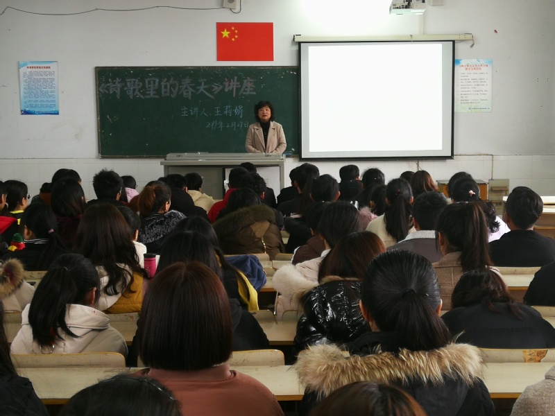 本网讯 春天,是万物复苏的季节,为了让同学们在新的学期新的开始有着春天般朝气蓬勃的精神,积极地面对学习和生活,同时感受诗歌的魅力,提高自身的文化素养,2月27日中午,在本部博学楼E606教室开展了主题为《诗歌里的春天》的讲座。主讲人为系党总支副书记王莉娟,软件工程系的同学们积极参加了本次讲座,讲座由系团总支书记曾甜主持。
