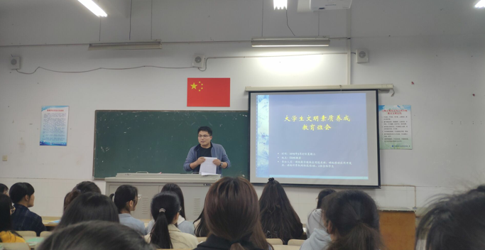 班会上,辅导员老师带领同学们学习了《高等学校学生行为准则》、《马鞍山师范高等专科学校文明公约》、《马鞍山师范高等专科学校大学生文明素质养成教育活动方案》的内容。并为同学们详细讲解了关于大学生文明素质养成教育活动,重点强调了文明行为、习惯养成等方面内容,包括杜绝带早点进教室、迟到、早退、逃课、睡觉、玩手机等课堂违纪行为,保持教室良好的学习环境,宿舍文明、光盘行动、校园文明、礼仪用语、日常文明用语、着装打扮、遵守公德、男女生交往要得体等。辅导员老师鼓励同学们要严格按照学校文明素质养成教育的要求,积极提高个人素质,努力营造文明、优美、和谐的校园文化氛围。随后,辅导员老师为同学们全面普及了校园安全常识,通过事例形象地向同学们讲述了校园周边存在的一些安全隐患,让同学们认识到在日常生活中防患于未然的重要性和生命的脆弱与可贵,及时的为同学们敲响了安全的警钟。班会的最后,同学们结合班会内容进行了讨论,大家积极参与其中,提高了同学们的认识。