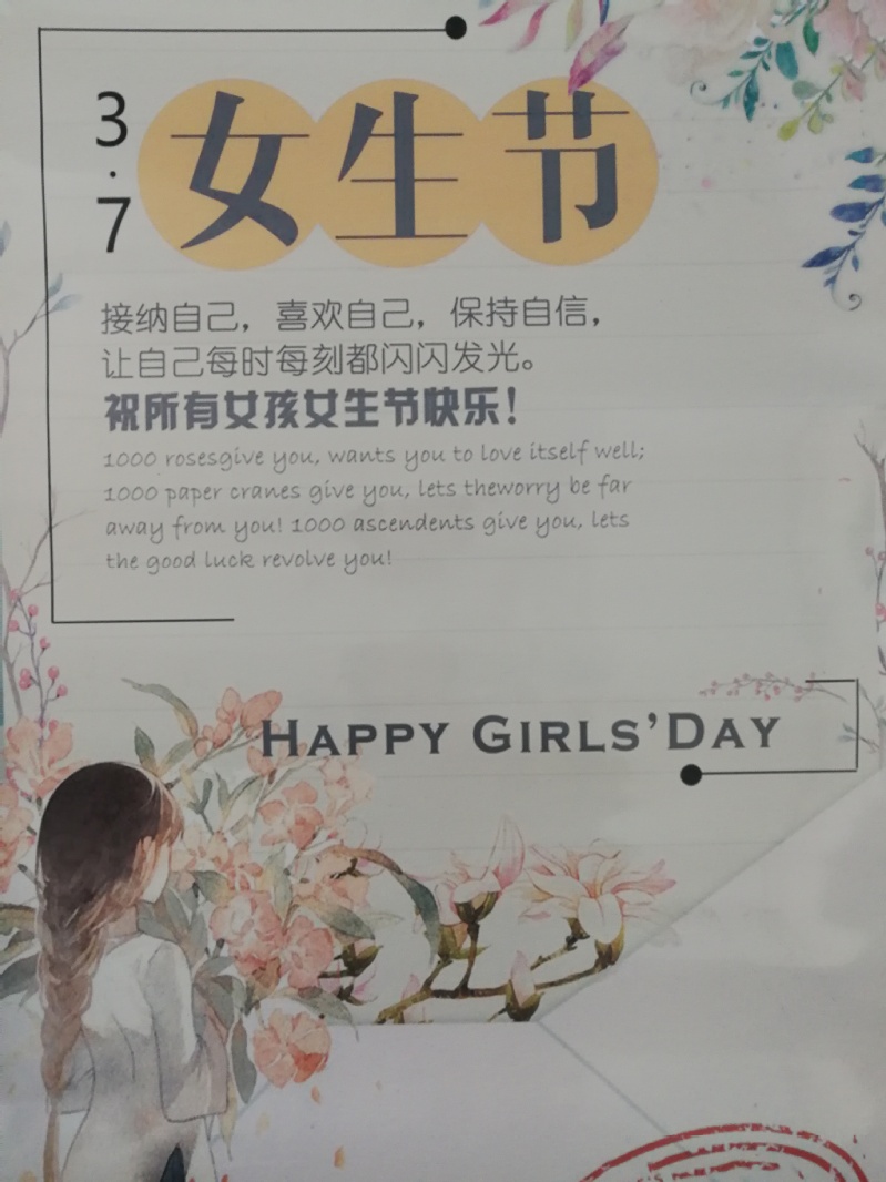早在几天前,系部就悬挂了“春水初生,春林初盛,春风十里,不知软件工程的你”的横幅,张贴了关于女生节的海报,简洁而生动地表达了对全体女生的祝福。6日晚,由各班心理委员作为主持人召开了女生节的主题班会并开展了相关活动,班干们也都积极的参与策划安排。除了观看精心制作的女生节PPT外,还有一系列丰富的女生节活动。有班干为女生们唱歌,悦耳的歌声带走了同学们一天的疲惫,忘记了自己的烦恼。游戏有套圈拿奖品,即使手气不好也没有关系,还有棒棒糖赠送,让女生的心情像糖一样也甜甜的。还有的班级提前为女生准备了小礼物,并在班长和生活委员的协助下发送到每一位女生的手中。活动中,还向女生发放了心愿便利贴,让她们在便利贴上写下自己的小愿望,贴在了班级的展示栏中。每次看到自己的愿望,女生们定能信心满满,斗志昂扬,一步一步向着自己的理想靠近。