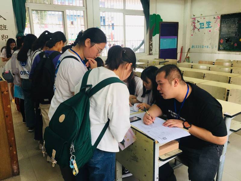 在迎新工作中,有这样的一批志愿者成为校园里一道亮丽的风景线。尽管奔波劳累,但他们热情不减,将迎新进行到底。帐篷下,志愿者们在桌前忙碌,即使汗如雨下,也不将嘴角放下,从清晨忙至傍晚,从人海忙至零星,始终以最饱满的心情面对每个新生和每位家长。辅导员在志愿者的协助下确认每位学生入学资格、核对学生缴费情况、为新生分配宿舍、为学生发放餐卡等。新生办理完手续后在志愿者的引导下顺利入住宿舍,在入学第一天就感受到了家的温暖。