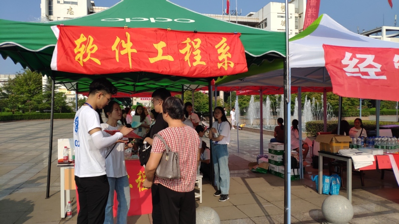 本网讯 金秋九月,八方来客,载着父母加注的深深期盼,又一批新的面孔齐聚于软件工程系,新生学子们已叩响大学殿堂的大门。为了给新生营造一个良好的校园文化环境,确保新生的报到工作顺利进行,软件工程系领导、全体学生工作人员和经过迎新培训的学生志愿者们紧锣密鼓的做着迎新的各项准备工作,在校园内到处可以看到红色的迎新条幅,人性化的道路指示牌,大家都全身心的投入到迎新工作中,确保了迎新工作的顺利进行。