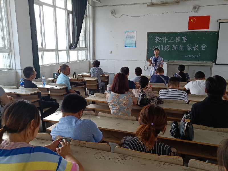 本网讯 为了向家长和学生介绍系部的教育理念和教育目标,帮助家长和学生了学校的学习环境和生活环境,软件工程系于9月7日下午在博学楼606教室召开了新生家长会。系党总副书记王莉娟,教研室主任虞娟、董娜、姚正参加了本次会议。会议由系团总支书记曾甜主持。