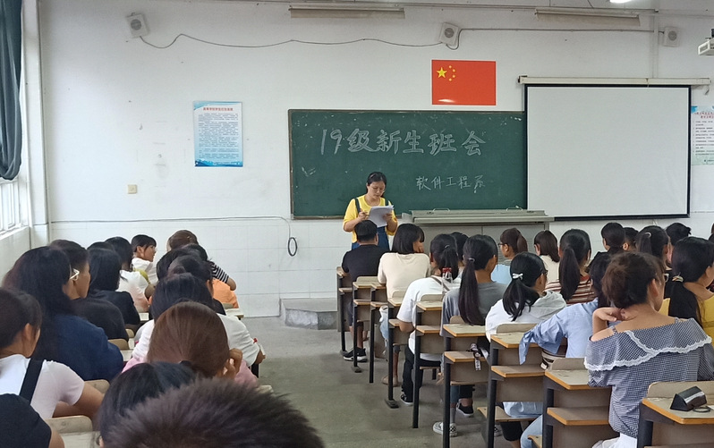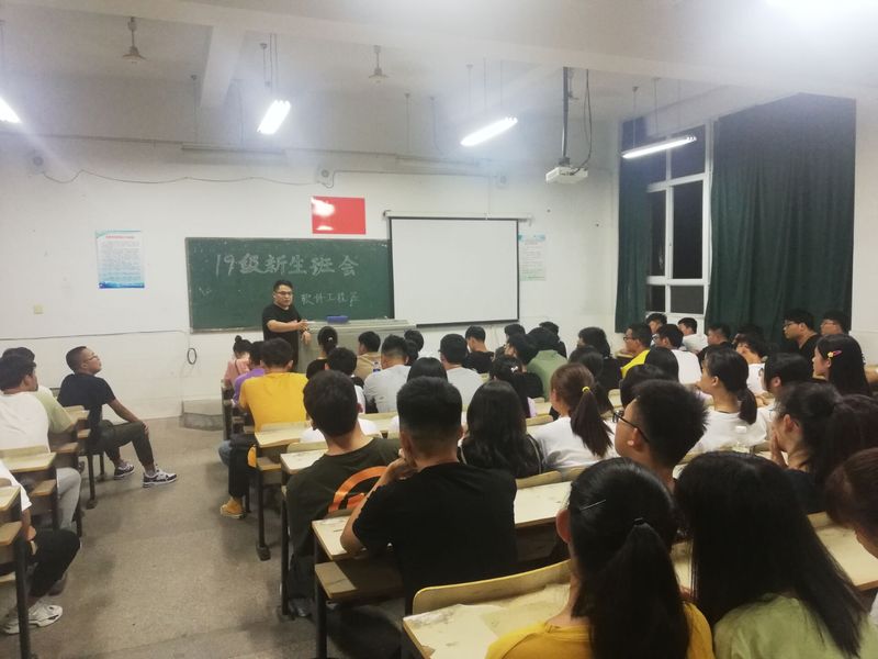 随后,为了帮助新生更快的适应大学生活,解决他们的在新环境中所面临的种种问题,新生班辅导员曾甜、马宇飞、李顺顺老师深入到班级,召开了新生班第一次班会。
