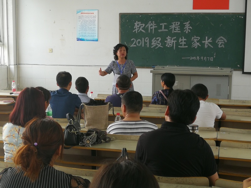 首先由王莉娟书记为家长们介绍了师专的校史、系部的发展史,以及系部的师资情况和教学环境等。王莉娟说,“孩子们离开了家,来到了软件工程系这个新家,系部的老师们一定会向对待自己的孩子一样对待学生,请家长们放心。”