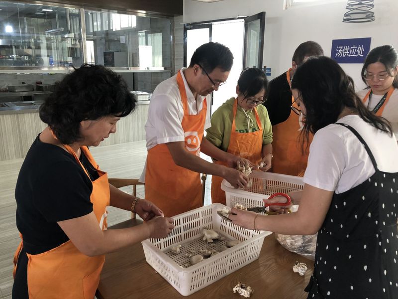 随后,全体党员在刘恒校长的带领下,来到校教工餐厅,围绕“不忘初心、牢记使命”主题开展党日活动。刘恒带领党员教师们帮助餐厅工作人员理菜、打扫地面卫生、收拾清洁餐桌等,以实际行动彰显党员初心,为学校餐厅清洁环境贡献自己的一份力量。