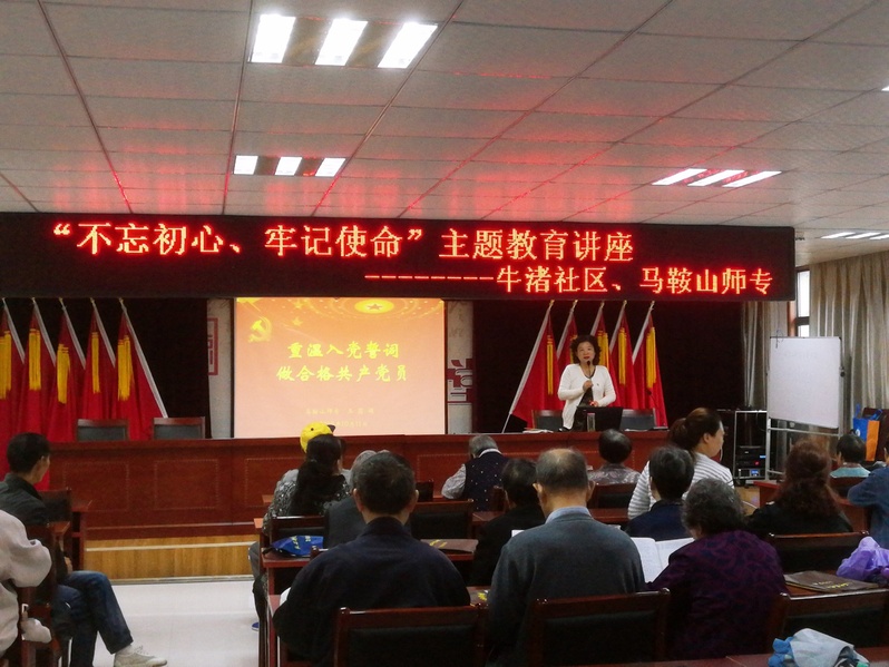 本网讯 10月11日上午,软件工程系党总支全体党员走进牛渚社区开展以“不忘初心,牢记使命”为主题的社区志愿活动,系党总支副书记王莉娟同志给社区老党员和社区群众代表上了一堂形式多样、内容丰富的党课。