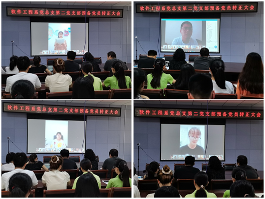 本网讯 7月9日,软件工程系党总支第二党支部组织召开党员大会,以视频会议的形式讨论了15名预备期满的党员转正问题。党支部书记李顺顺主持了会议。