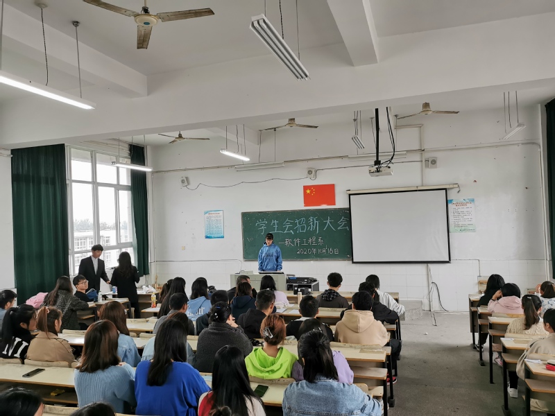 本网讯 秋雨微凉,软件工程系的新生们怀揣着激情和梦想踏入了师专的大门。10月16日中午,软件工程系学生会在博学楼606教室开展了新一届的招新活动。软件工程系团总支书记曾甜、副书记马宇飞、学生会干部以及2020级部分新生参加了本次活动。