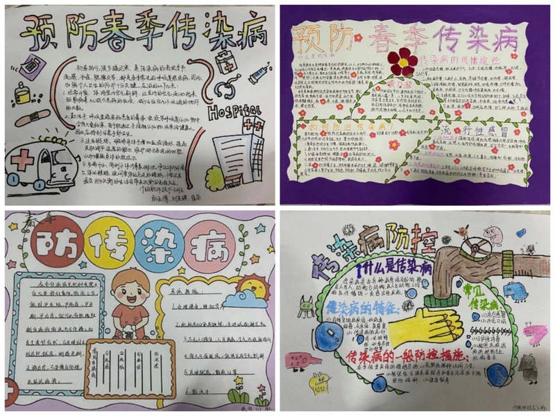 活动三:系部开展“春季传染病防控知识”手抄报,此项活动也是宣传传染病防控知识的重要途径。同学们用简单生动的绘图和娟秀的文字,让大家直观了解到传染病的产生途径及防控措施。让同学们能重视传染病的预防。