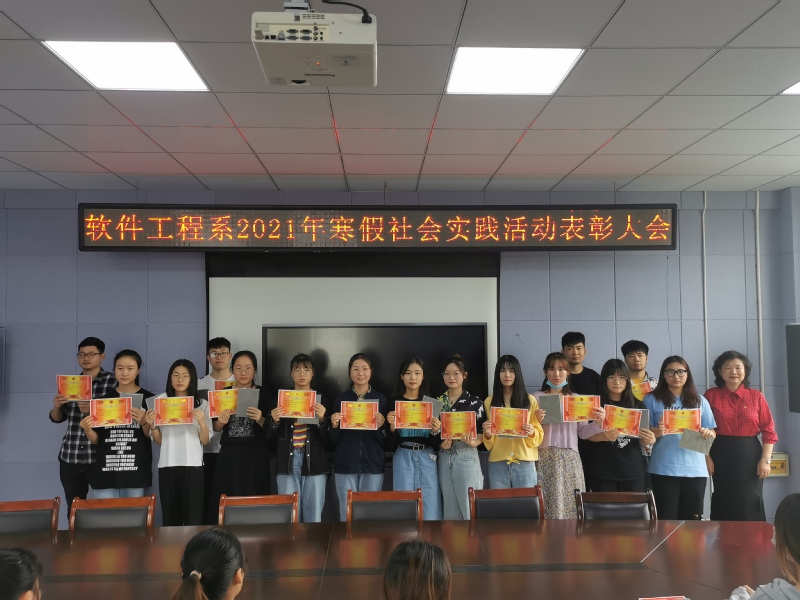本网讯 为进一步推动系部寒假社会实践工作的深入开展,软件工程系于5月11日在行知楼601会议室召开了2021年寒假社会实践活动表彰大会,系党总支书记王莉娟、系辅导员老师以及受表彰的集体、个人参加了本次会议。会议由系组织员曾甜主持。