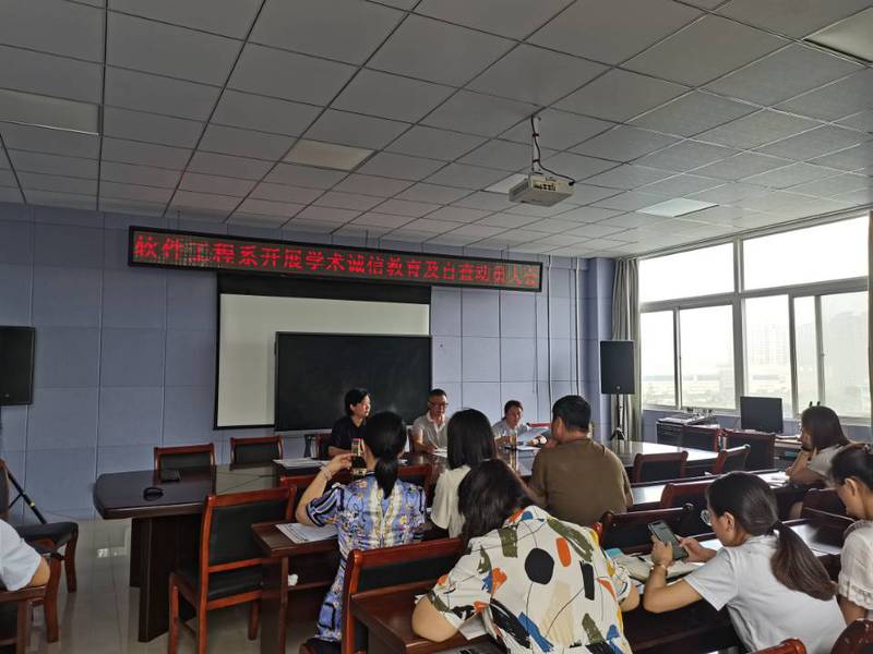 本网讯 8月29日上午8点,马鞍山师范高等专科学校软件工程系在行知楼601室召开2021—2022学年第一学期学术诚信教育及自查动员会议。系教学主任杜丹主持会议并讲话,系全体教职员工参加会议。
