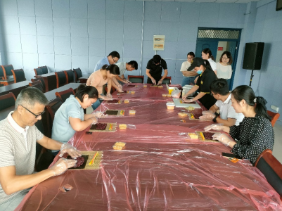 与此同时,我们另一组的老师们也热情高涨的投入到我们的寿司制作中,现场在厨艺老师的教学带领下,一盒盒香味四溢的寿司在老师们的巧手下形成。自己动手的快乐在老师的欢声笑语中展现的淋漓尽致。