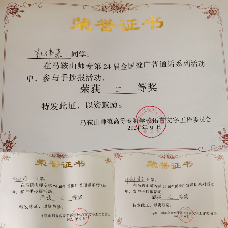 在学校举办的推普系列活动中,我系学子在学校系列活动中表现优异,尤其是在手抄报活动中频频斩获奖项。20级软件技术一班杜韦嘉获得手抄报活动二等奖,20级计算机网络技术二班许媚妹、夏筱和20级软件技术二班林海燕获得校手抄报活动三等奖。