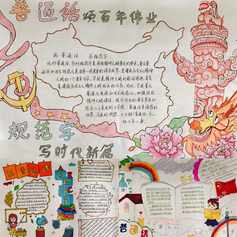 此次活动有主题班会,手抄报等形式。主题班会上,各班班长向同学们解释了什么是普通话,讲述了说普通话的意义,和同学们一起探讨在日常生活中会有哪些发音不标准的现象,同学们纷纷参与,积极讨论,畅所欲言的发表自己对推广普通话的看法和建议。最后各班班长还呼吁同学们积极参与到推普活动中去,要立志为营造良好的语言文字氛围做出自己的贡献。