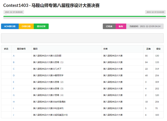 本次大赛分为初赛和决赛两个阶段。初赛阶段,通过近2个月的OJ系统训练,综合OJ系统排名前100名学生和语言类课程老师推荐,选拔出决赛现场赛选手。决赛阶段是以现场赛的方式,通过OJ系统进行比赛,借助OJ系统平台完成赛题的发布、程序的提交和成绩评定。通过比赛角逐,最终评选出获奖情况共计一等奖10名、二等奖20名和三等奖 31名。