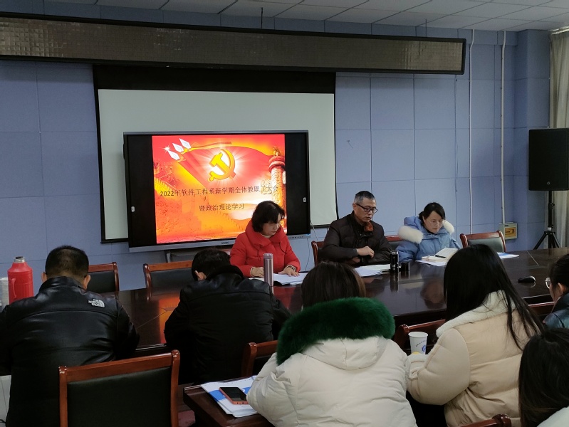 本网讯 2月18日下午,软件工程系2022年度新学期教职工大会暨政治理论学习在行知楼601召开。系主任鲁兵、党总支书记王莉娟、副主任杜丹及全体教职工参加本次会议。