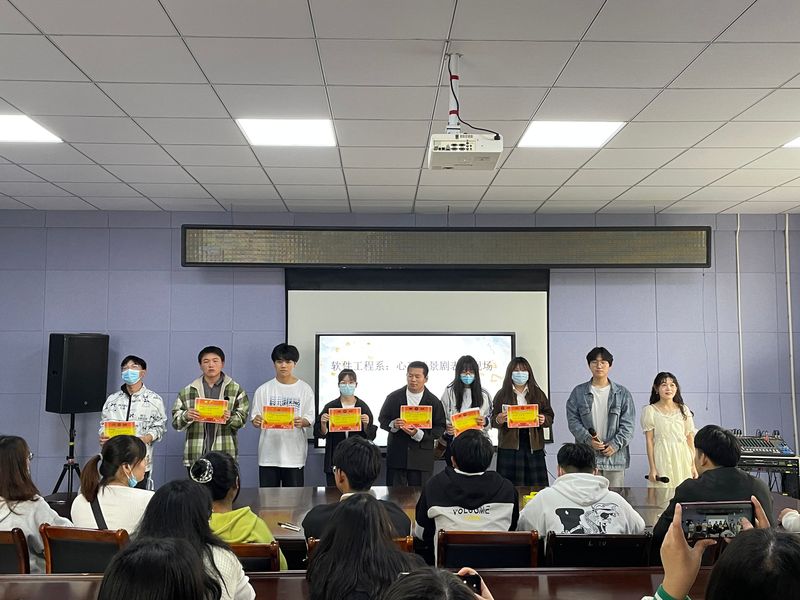 本网讯 为了丰富软件工程系学生的校园文化生活,营造健康和谐的文化氛围,2022年4月30日下午,由学生会心理健康部承办的“心理情景剧”比赛在行知楼601拉开帷幕,各班同学积极参与,为同学们带来了一场别开生面的视觉盛宴。