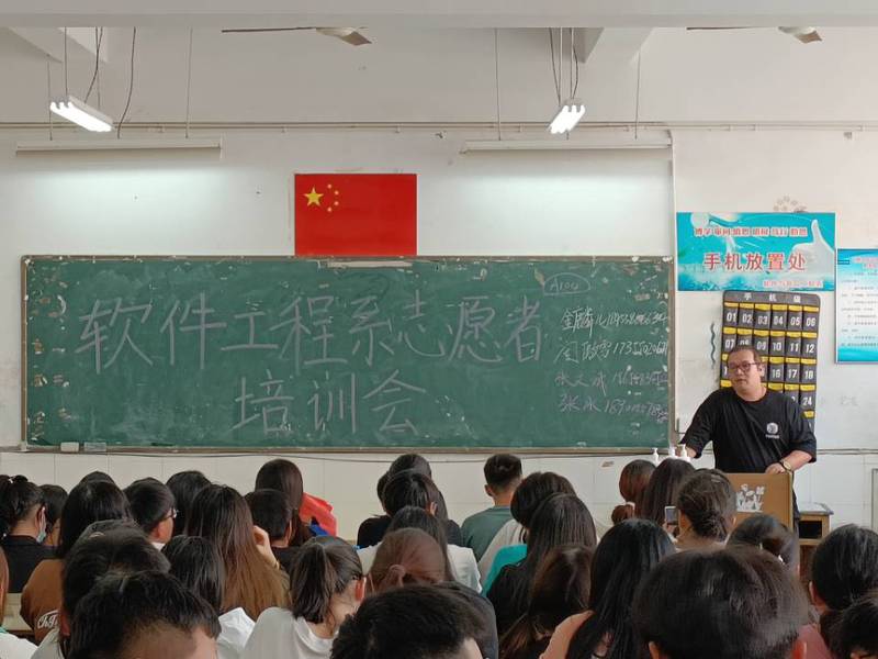 本网讯 为确保迎新工作顺利开展,9月12日下午13:00,软件工程系在博学楼106教室召开了迎新志愿者培训会。系团总支书记马宇飞、团总支副书记李顺顺以及相关教师携130余名迎新志愿者共同参与本次活动。