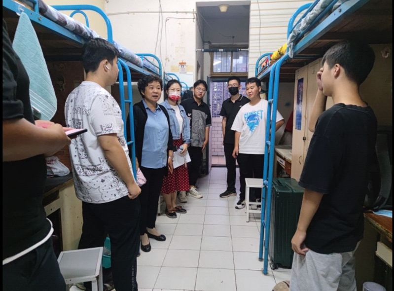 本网讯 时值九月,校园萌新;软工家庭,又添新丁。9月14日,2022级软件工程系新生满怀好奇与期待,承载嘱托与希望,踏上大学之旅。当晚,软件工程系党总支书记王莉娟一行实地走访宿舍,倾听学生心声,送去系部祝福。22级新生辅导员曾甜、李顺顺、王英、董轩参加本次走访活动。