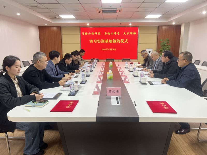 马鞍山软件园副主任吴芳,花山区人社局工作人员苏峰,教务处实训中心主任姚政,安徽大家网络科技公司陈玉国等参加签约仪式。