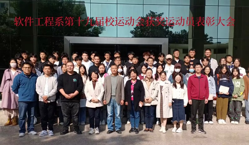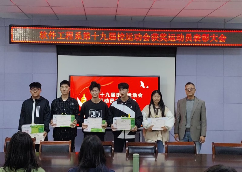 本网讯 2022年11月2日中午,软件工程系在行知楼601举办了第十九届校运动会获奖运动员表彰大会,系主任鲁兵、党总支书记王莉娟、副主任杜丹、组织员曾甜以及辅导员出席本次大会,全体运动员、学生会成员、后勤保障人员参加本次大会。