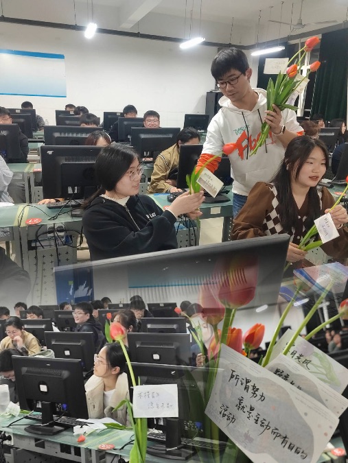 活动开始,辅导员向各班级女生送去祝福,殷切寄语,并赠送带有寓意的书签作为礼物,表达了对班级女生美好未来的期盼。班级全体男生也积极参与到此次活动中来,将精心准备的带有写着美好祝福语的郁金香发放到班级的每个女生手中。不少同学表示,此次女神节活动,充满了正能量,不仅丰富了同学们的课余生活,更营造了极其浓郁的“同学爱”氛围。这次活动彰显了青春女孩的个性、放飞了女生的梦想,让女生们在繁忙的学习生活中,收获一个笑脸、一份祝福、一份温暖。