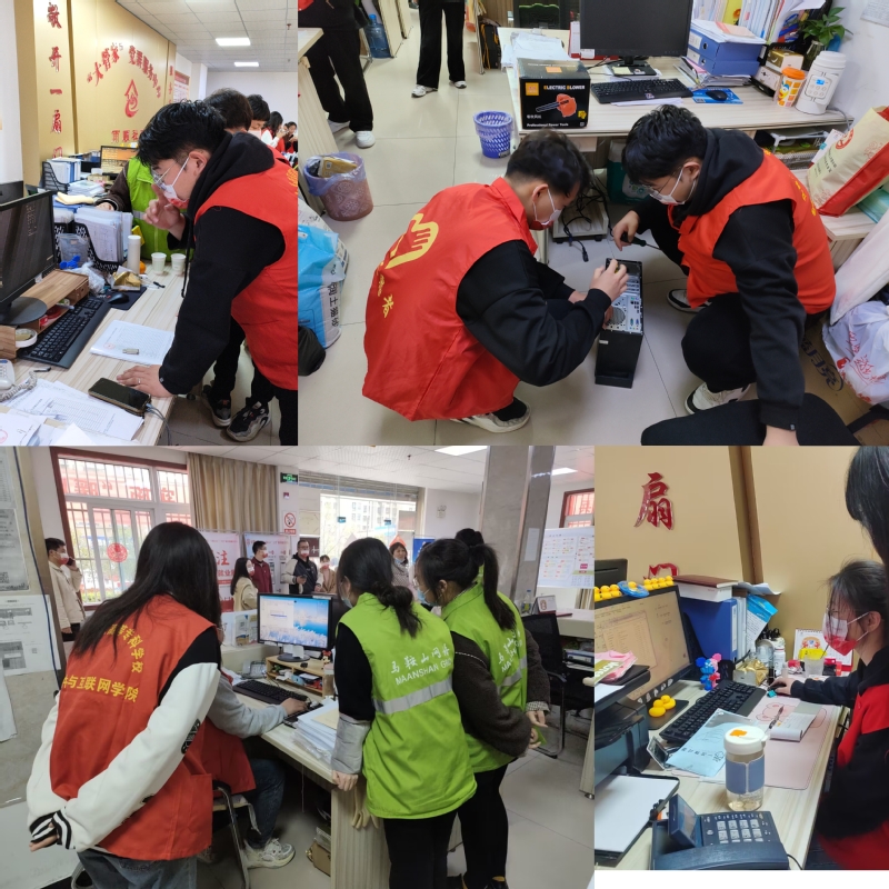 雨顺社区负责人对王莉娟一行到来表示热烈欢迎,简要介绍了社区党建基本情况,全体人员参观了社区党群服务中心各部门场所。双方围绕党建品牌工作、系部社区互动、志愿服务等开展了深入讨论交流,对后期工作进行初步谋划构想。随后,我系8名学生志愿者开展电脑维修服务活动,为社区工作人员和居民提供电脑除尘、硬件组装、系统安装等专业化服务,学生优质的服务、精湛的技术受到社区人员一致好评。