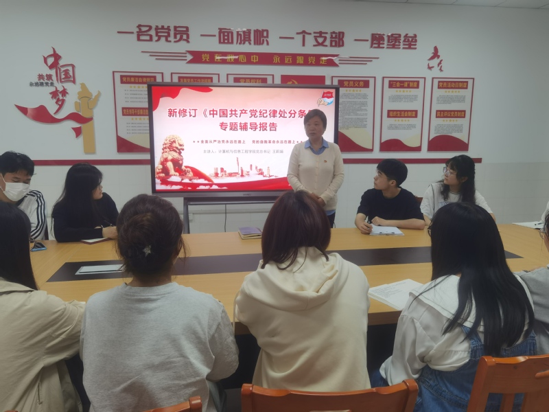 为加强党纪学习,筑牢党的纪律防线,德赢ac米兰官方合作vwin党总支分别于5月7日和5月15日在行知楼党员活动室为教师党员和学生党员开展党纪学习教育专题党课,党课由德赢ac米兰官方合作vwin党总支书记王莉娟主讲。