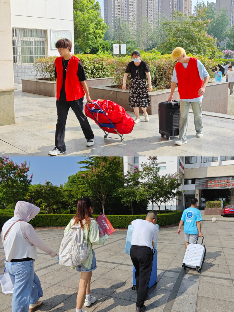 德赢ac米兰官方合作vwin党总支书记王莉娟、副院长杜丹、党总支副书记曾甜、团总支书记马宇飞及新生辅导员李顺顺一早便来到了学院的迎新接待点,时时关注迎新工作进展情况,反复叮嘱志愿者们一定要尽心尽力,履职尽责,为学院新生提供周到满意的服务,给新生一个最美的“初见”,让同学们感受到学院的温暖。志愿者们从新生手中拎过一件件行李,一趟趟来回穿梭在人群中,志愿者的一声问候、一个微笑、一次讲解,点点滴滴汇聚了他们的热情与期待,从校门口到学生公寓都记录着他们忙碌的身影,他们为陆续到来的新生有序提供接待引导、行李搬运、入学流程等服务,整个流程顺畅高效、井然有序。