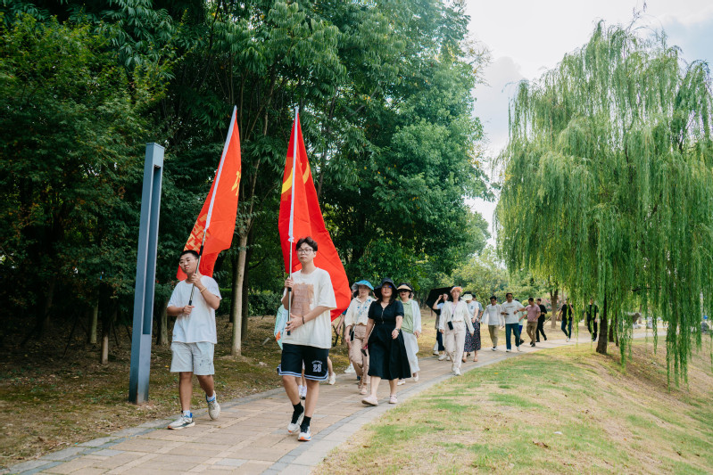 教师们从行知楼出发,在校园内的林荫道上一同漫步。他们沿着生态小径,享受着节日的愉悦氛围。阳光透过茂密的树梢,斑驳地洒在林荫道上,仿佛为这场活动增添了一抹温暖的色彩。步行至芦塘公园,园内荷叶间的清风带来丝丝凉意,荷花随风摇曳,如同在向辛劳的教师们致以节日的问候。路途中,老师们就廉洁从教、提升教育教学质量进行了交流,彼此分享着工作与生活中的快乐,彰显了教师群体的团结和活力。