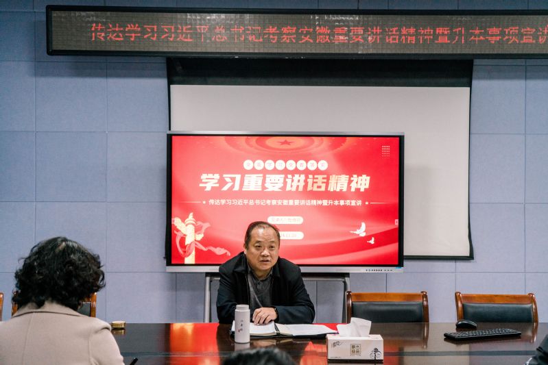 杜维斌指出,2012年以来,习近平总书记高度重视安徽发展,多次亲临安徽考察调研。学院要把学习贯彻习近平总书记考察安徽重要讲话精神作为重要任务,围绕领悟习近平总书记关于科技创新和产业转型升级的重要指示精神、关于推进深层次改革和高水平开放的重要指示精神、关于构建城乡融合发展的重要指示精神等六个方面,全面深入准确的学习贯彻,积极推动理论学习向实践成效转化,为学校升本工作持续发力。