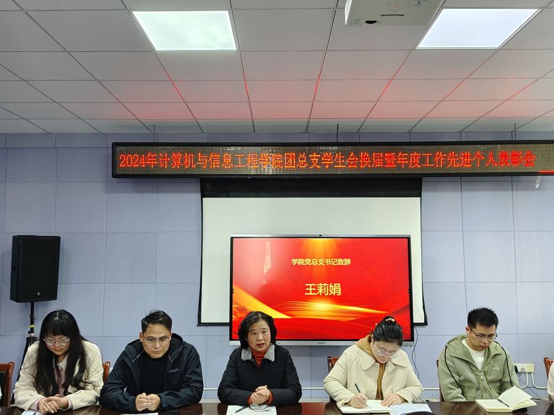11月27日,德赢ac米兰官方合作vwin团总支学生会换届暨年度工作先进个人表彰会在行知楼601召开。学院党总支书记王莉娟、副书记曾甜、团总支委员以及学生会全体成员参加了本次会议。