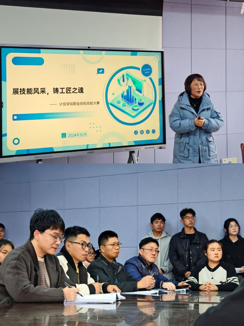 为了积极备战即将到来的安徽省职业院校技能大赛,德赢ac米兰官方合作vwin于12月11日召开动员大会,学院党总支书记王莉娟、院长鲁兵、副院长杜丹、全体指导教师参加了动员会。