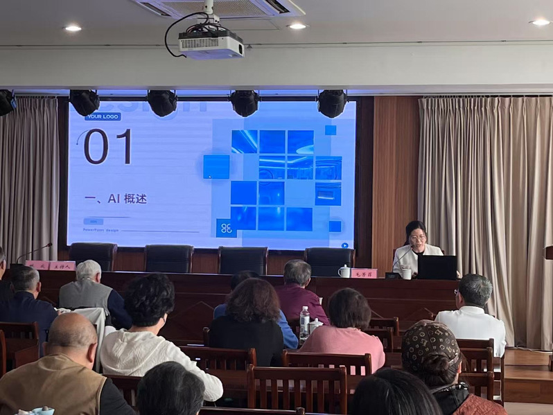 在讲座现场,毛芳菲以“AI概述”为开篇,借助精心准备的PPT,深入浅出地为离退休干部们讲解人工智能知识。她从AI的基本概念入手,结合实际生活案例,生动形象地阐述AI在各个领域的应用与发展趋势,让原本抽象的技术知识变得通俗易懂。现场气氛热烈,老干部们认真聆听、积极思考,不时就感兴趣的问题与毛老师互动交流。