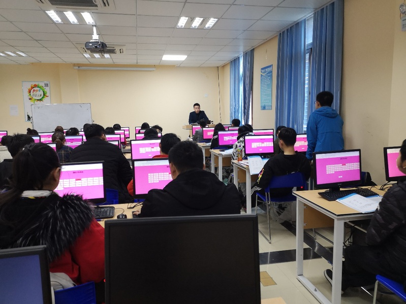 10点10分,线下面授课开始,授课教师刘文飞老师带领学生们回顾复习理论知识,并有计划有针对性地指导学生上机操作。